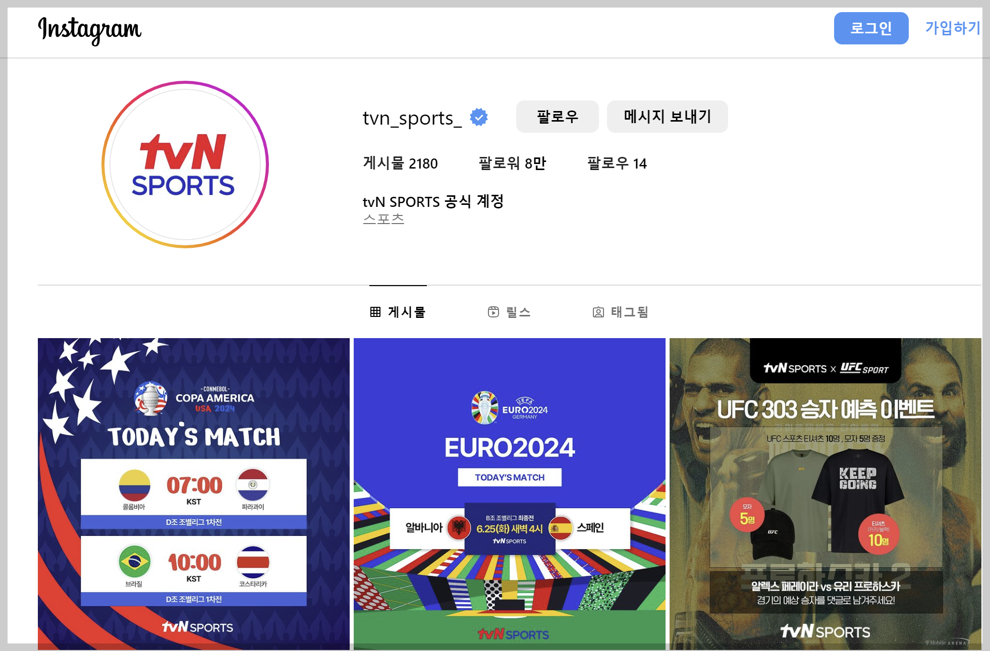 인스타그램: https://www.instagram.com/tvn_sports_/reels/